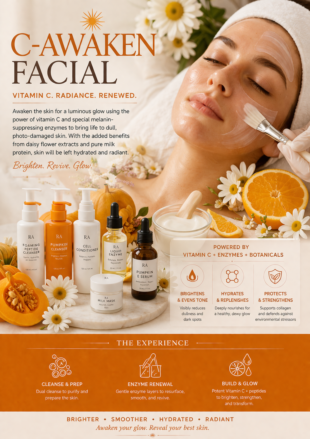 The C-Awaken Facial not only delivers an immediate radiance but also works beneath the surface to improve overall skin health, leaving your skin smoother, clearer, and visibly refreshed.