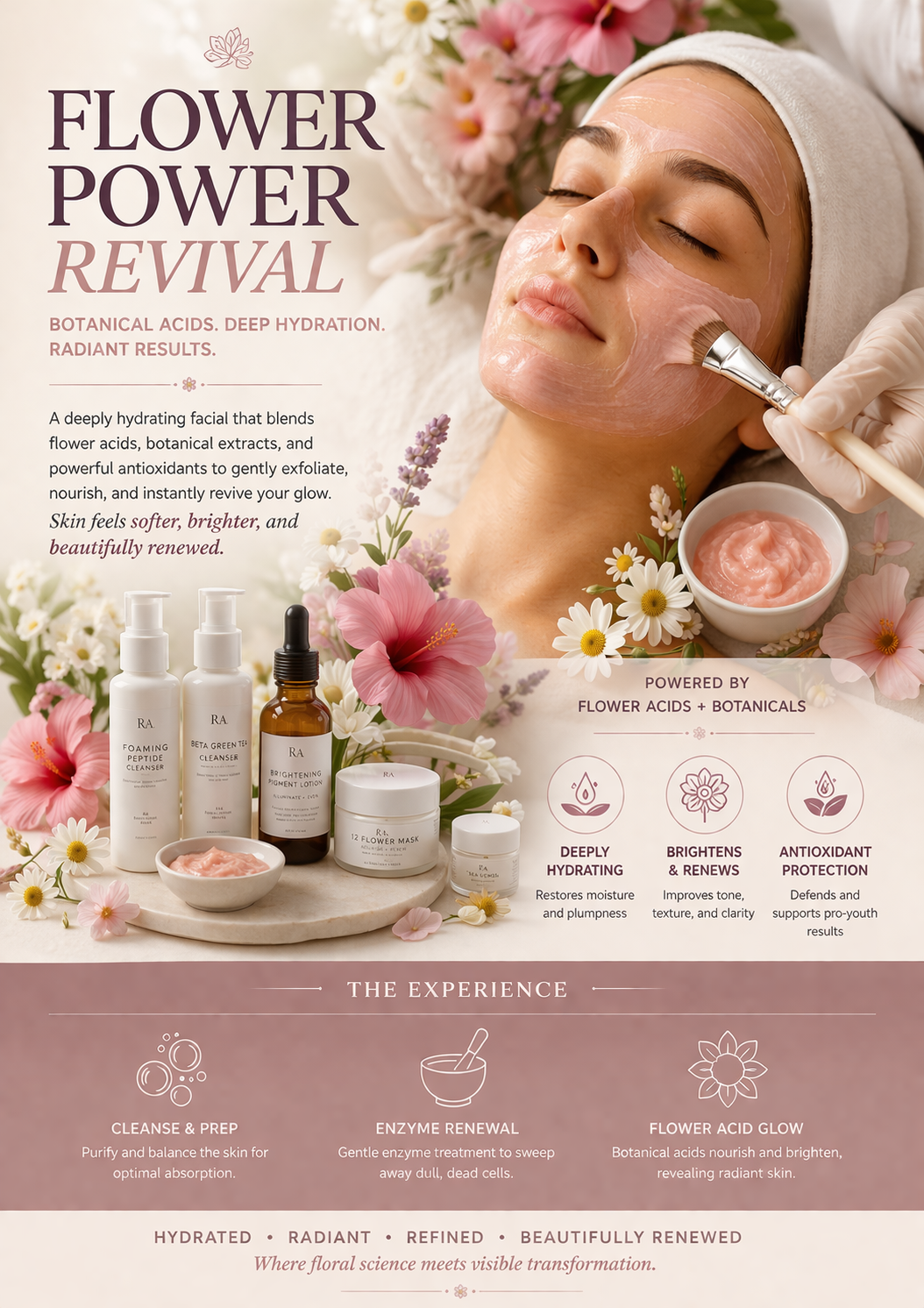 Designed to leave the skin soft, plump, and radiant, the Flower Power Revival transforms dull, dehydrated skin into a healthy, glowing complexion. It’s the perfect balance of gentle resurfacing and deep nourishment for a refreshed, youthful look.
